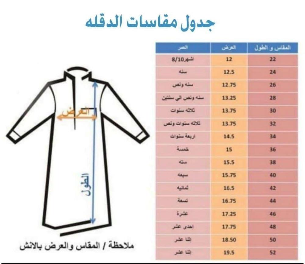 المقاسات المتوفرة من 6 اشهر الى 13 سنه