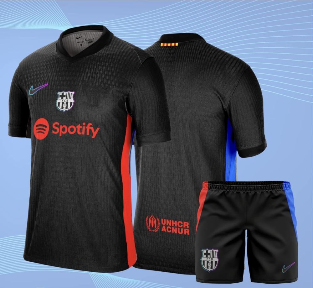 طقم برشلونة الاسود 2024 2025 مع الشورت