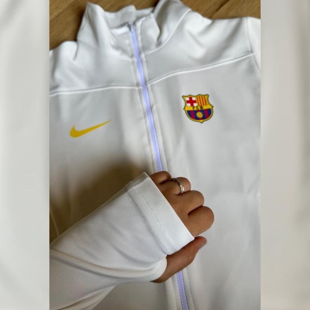 جاكيت رياضي أبيض بشعار نادي برشلونه